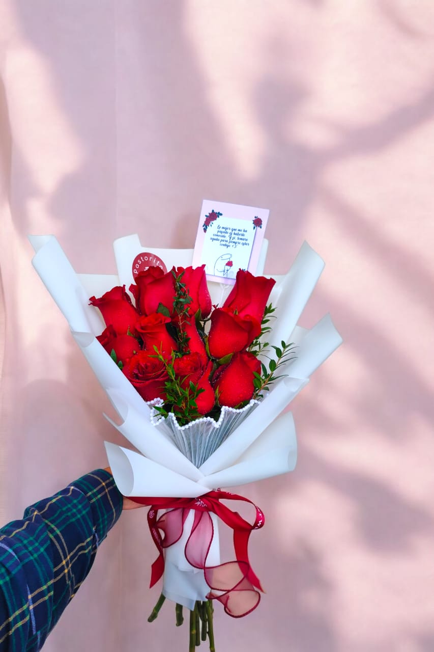 + Tarjeta de cuidados gratis12 rosas rojas en tull con perlas