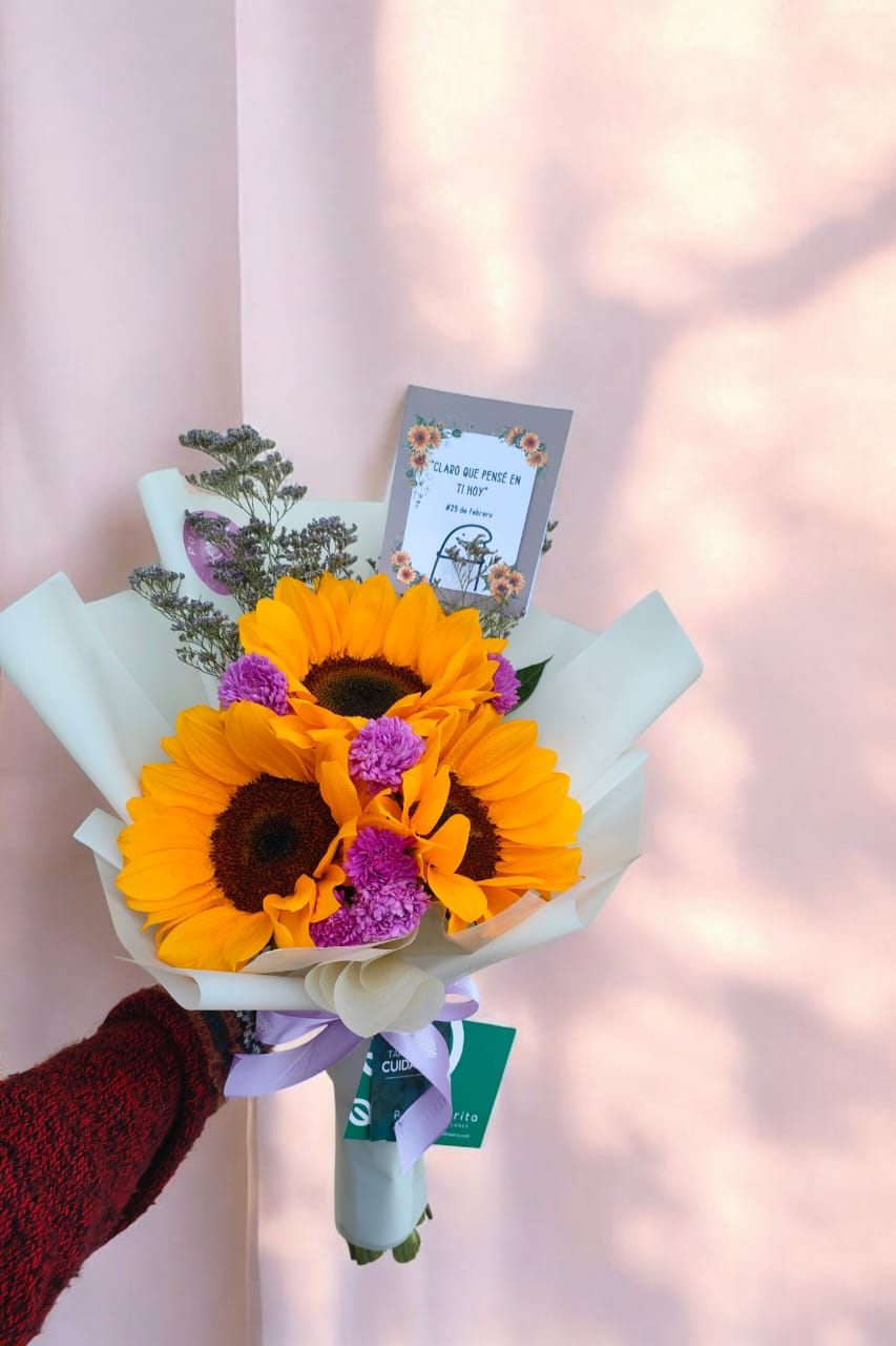 + Tarjeta de cuidados gratis3 girasoles y pompos